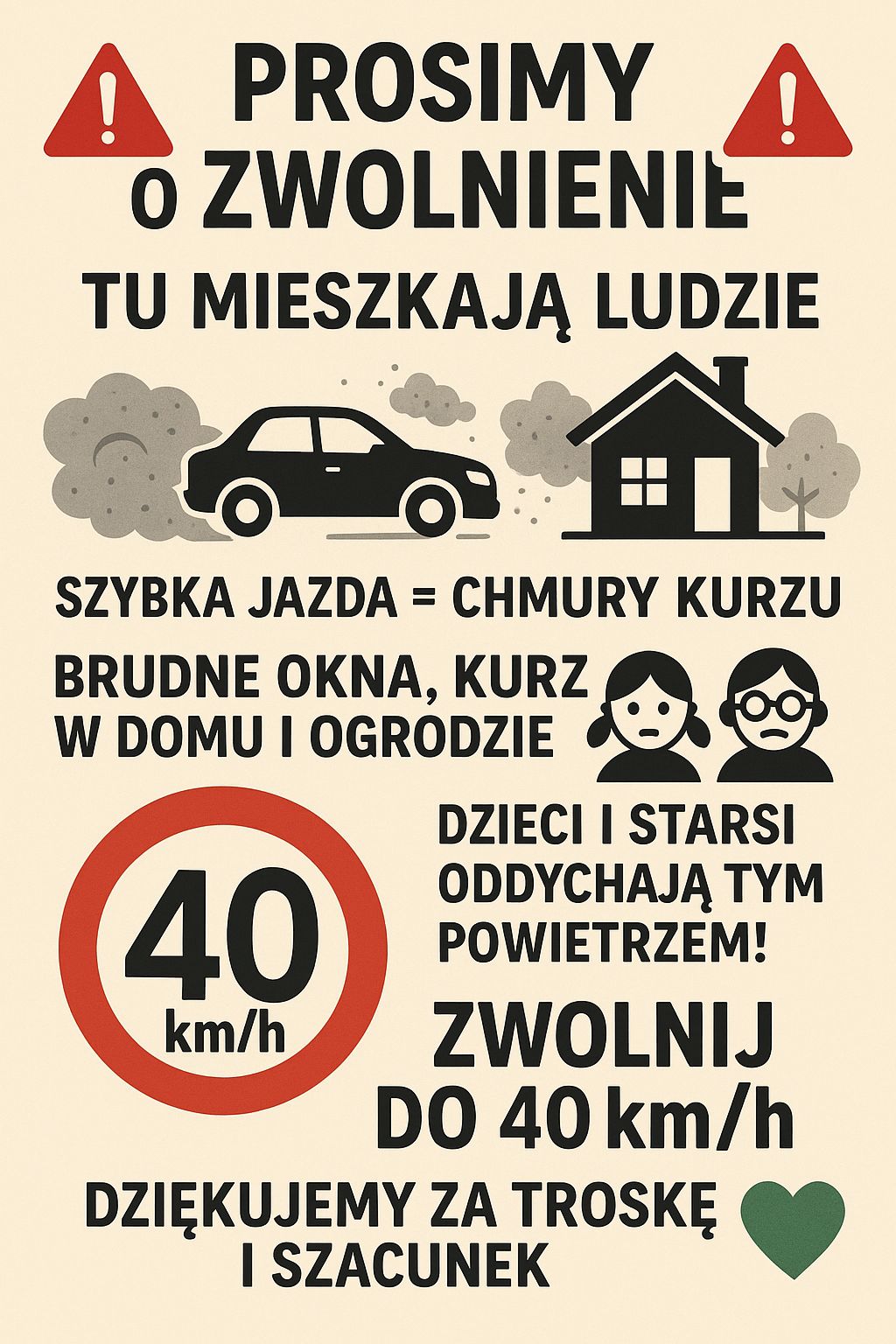 Mamy takie ulice jak widać. Wszedzie biały pył. Na parapetach, samochodach, oknach. Przy tych ulicach mieszkają Wasi sąsiedzi. Są tu dzieci co bawią się w pyle i kurzu. To lokalne ulice więc my sami sobie kurzymy. Proszę o opamiętanie mieszkańcow Leśna i Główczewic. Ile drogi kierowco, kurierze, rolniku zyskasz 15-20 sekund? UDOSTĘPNIAJCIE