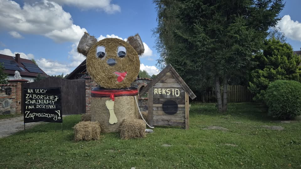Poczciwy Reksio Las strzeże prędkości na ul. Zaborskiej przy okazji zapraszając na Dożynki.