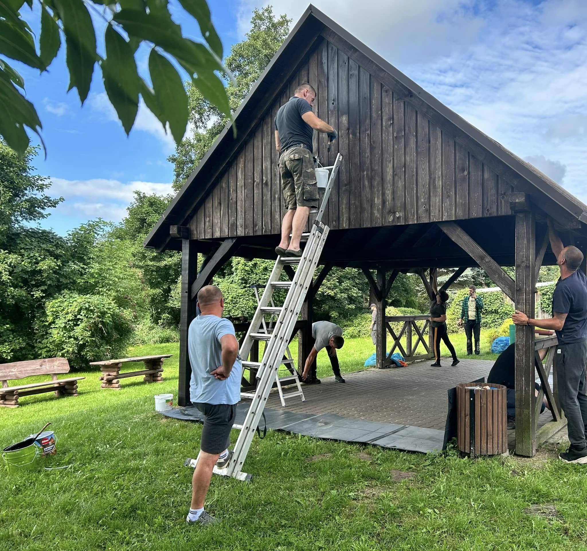 Mamy to!!! Zaangażowanie i ogrom pracy ochotników pozwoliło nam osiągnąć mały sukces. To pierwszy krok, jaki stawiamy by przywrócić blask naszym wsiom. Nie spodziewaliśmy się takiego odzewu ze strony mieszkańców. Jesteśmy pozywytwnie zaskoczeni. Mamy nadzieję, ze to dopiero początek zamian jakich razem dokonamy. Serdeczne podziękowania dla wszystkich obecnych jak i Pana Marka Mellera za użyczenie rusztowania. Jesteście wspaniali. Mamy nadzieję, ze wszyscy widzimy się na części 2 która niebawem. Nie udało się nam dokończyć placu zabaw i molo, ale przerwa została ogłoszona byśmy mogli kibicować naszym siatkarzom na Olimpiadzie. Niestety Francuzi okazali się lepsi, ale cieszymy się z olimpijskiego srebra…