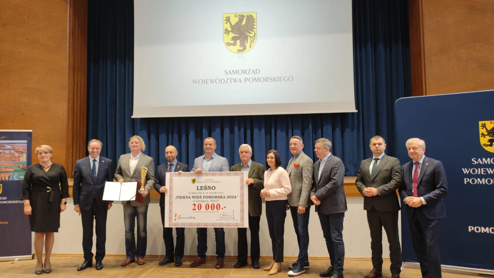 29.10 punktualnie o 12 w przepięknej sali Nieba Polskiego w Urzędzie Marszałkowskim rozpoczęła sie Gala wręczenia nagród w konkursie Piękna Wieś Pomorska 2024. Z ponad 1600 sołectw uzyskaliśmy II miejsce!!! Okazuje się, że komisja oceniająca doceniła nasze wysiłki w upiększeniu naszego Leśna. Nagrodę wręczył Marszałek Wojewodztwa. Towarzyszyla mi silna grupa wsparcia w osobach vice burmistrza Krzysztofa Gierszewskiego, radnego Tomasza Dorszyńskiego, pani dyr Anny Dorszyńskiej, ks proboszcza Damiana Drozdowskiego, prezesa Stowarzyszenia Ziemi Zaborskiej Ludwika Szymleka. Obecne bylo też KGW i przedstawiciel Rady Sołeckiej. Sami widzimy pierwsze efekty naszych działań. Studenci ciężko pracują, nadbrzeże powoli pięknieje, a na wiosnę czeka nowy płot…